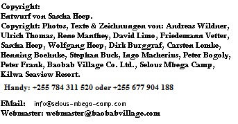 Ausflüge in das Dorf Mloka an. Angel Ausflüge auf dem Rufiji können ebenfalls organisiert werden. DAS HAUPT CAMP