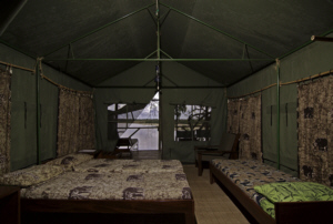 mächtigen Rufiji. Es gibt auch noch drei weitere Wald Zelte. Somit gibt es 11 Raüme im camp. Nur 500 Meter von der Grenze des Selous Reservat in seinem eigenen, privaten 60 ha großen Galeriewald-Reservat gelegen.