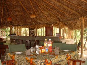 Die Bar und das Restaurant, mit Blick auf den Rufiji Fluss, finden Sie unter einem mit Palmenblättern gedeckten Dach rund um