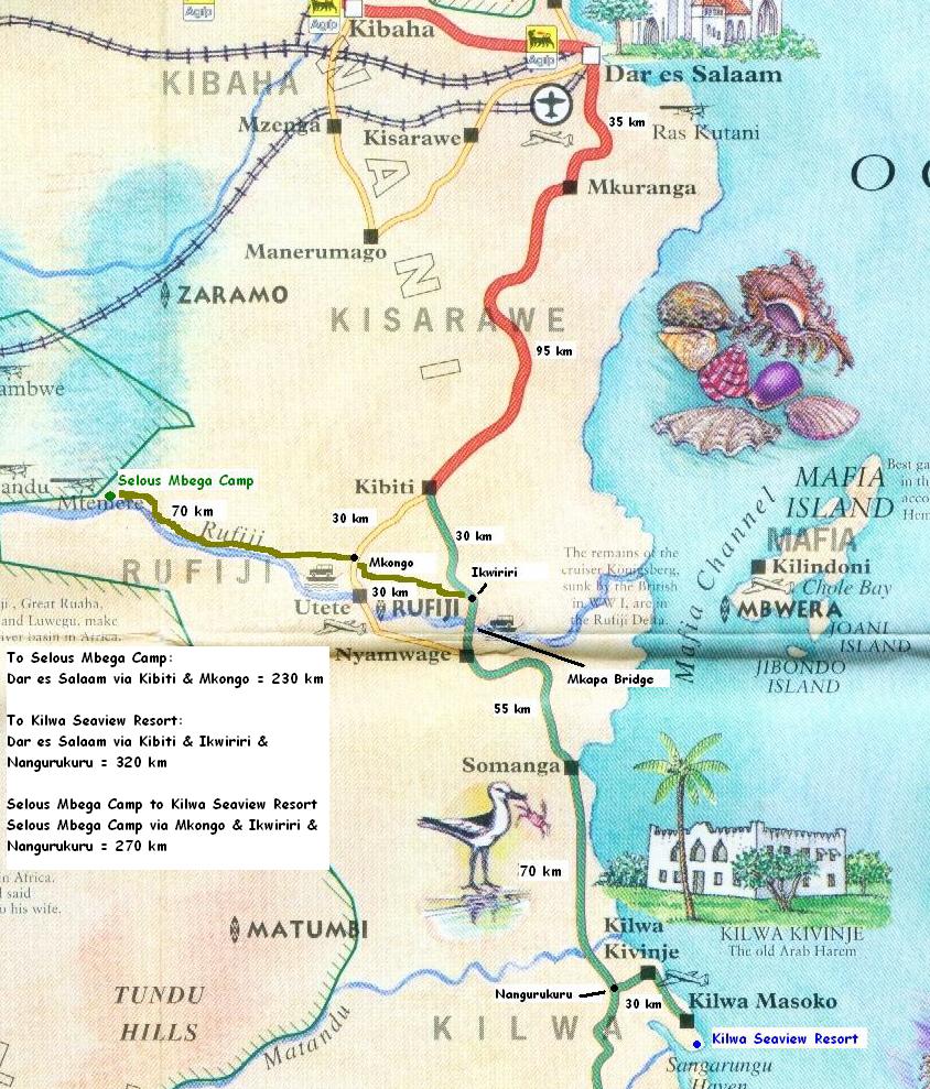 Anreise / Abreise zum und von Kisaki Dorf in der Nähe des Selous Mbega Camp KISAKI ANNEX.