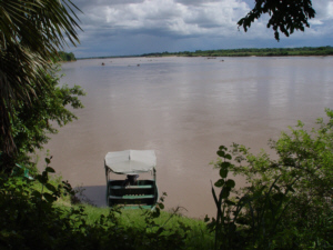 Der Fluß passiert Utete, dem Startpunkt flußabwärts für größere Kanus und Boote, nachdem er ungefähr den halben Weg vom Selous